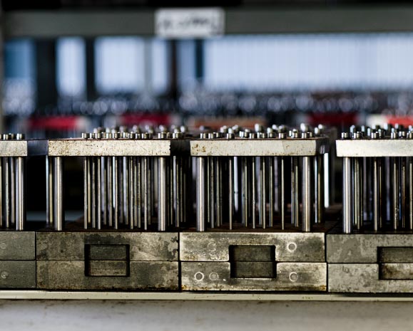 服飾金具のシェアは国内トップを誇り、これまで製造した金型の数は三万型以上にのぼります。ヒールの型も六千以上の取り揃え、国内トップクラスのシェアです。